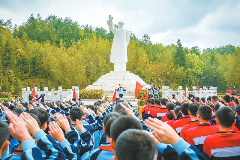 上杭古田镇中小学师生在毛主席纪念园庄严致敬