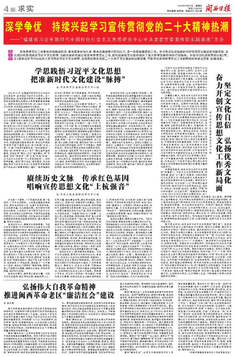 赓续历史文脉 传承红色基因 唱响宣传思想文化“上杭强音”