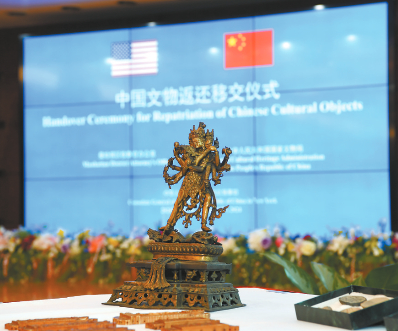 这是4月17日在美国纽约中国驻纽约总领馆拍摄的中国流失文物艺术品。中方17日在纽约接收美方返还的38件中国流失文物艺术品。新华社记者 李睿 摄