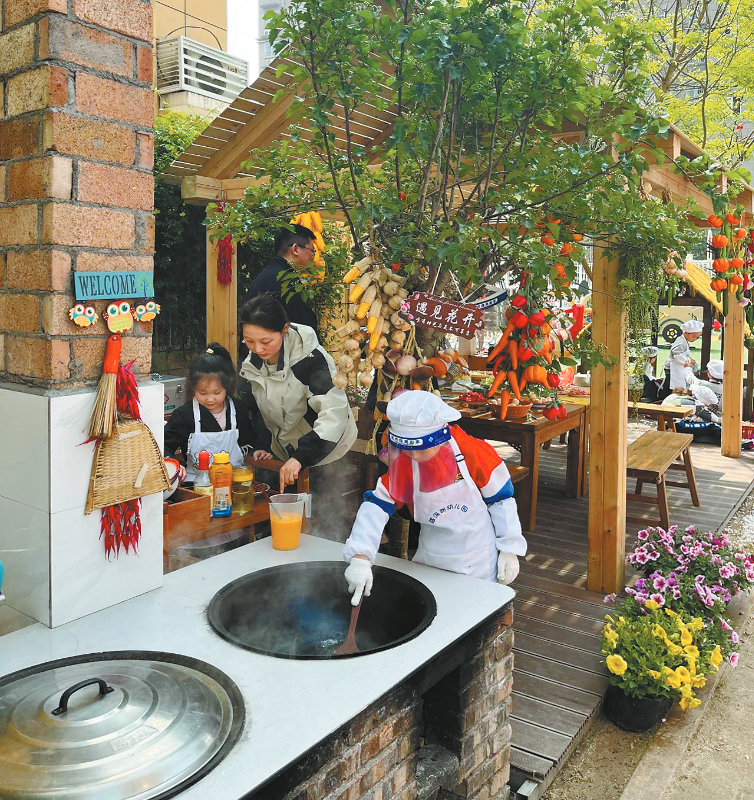 火在这个春天,但实际上,徐海路幼儿园开设主打烧火做饭的劳动体验活动已有四年。江苏省全面推进“幼儿园课程游戏化项目”,深入纠正幼儿园“小学化”倾向以来,这所积极探索的幼儿园,把劳动体验活动的场地搬到了可以感知四时的户外,搬到了充满烟火气的灶台前。