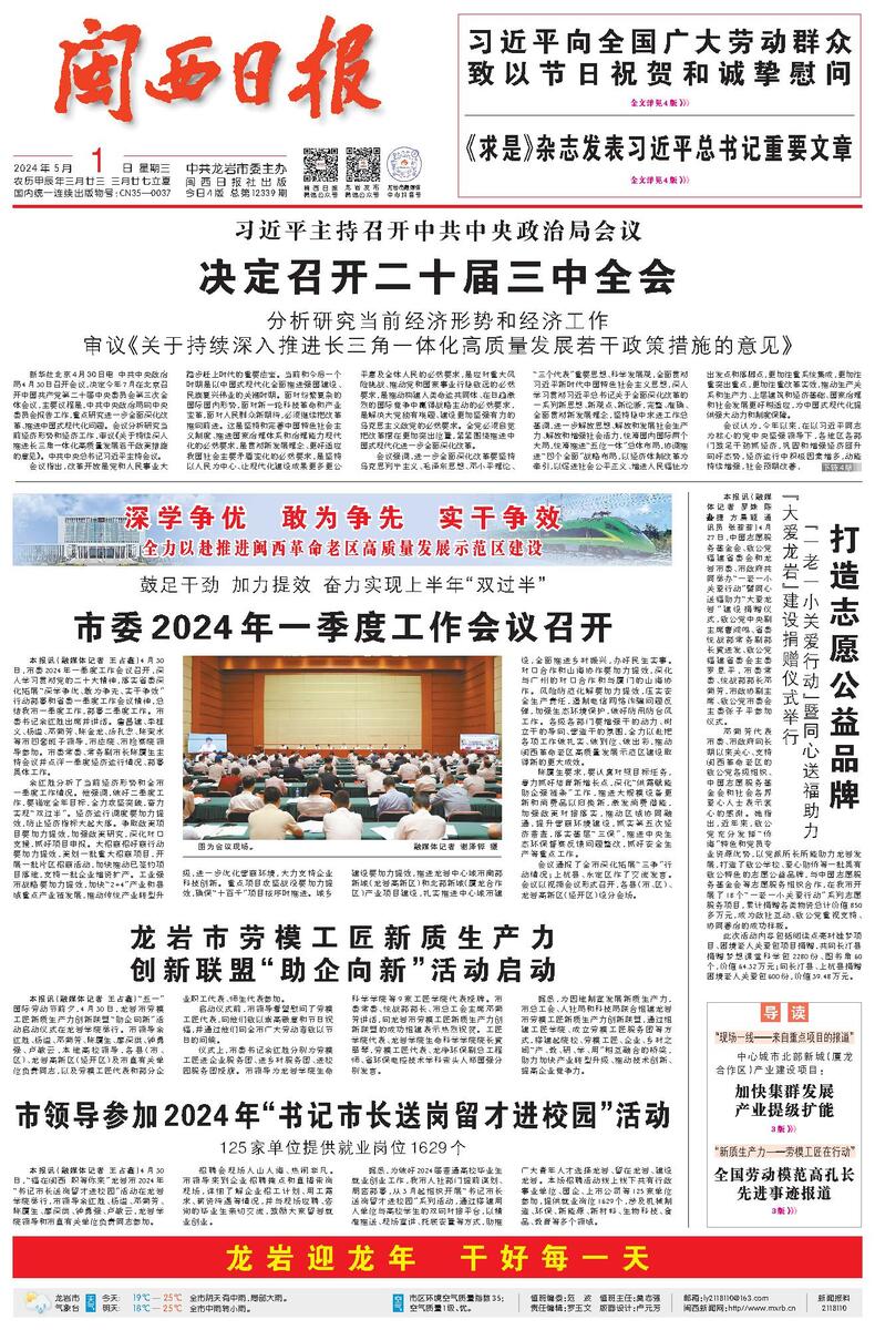 本报讯(融媒体记者 王占鑫)“五一”国际劳动节前夕,4月30日,龙岩市劳模工匠新质生产力创新联盟“助企向新”活动启动仪式在龙岩学院举行。市领导余红胜、杨溢、邓菊芳、陈厦生、廖深洪、钟勇强、卢敏云,本地高校领导,各县(市、区)、龙岩高新区(经开区)及市直有关单位负责同志,以及劳模工匠代表和部分企业职工代表、师生代表参加。