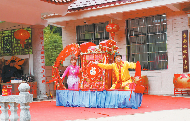 神龙桥有个妈祖信俗是人类非物质文 化遗产。5月1日是农历三月廿三,恰逢妈祖诞辰,帽村及周边的群众来到了这里,纪念海上女神妈祖,一起感受革命老区生态之美,体验乡村振兴成果,观看了充满客家风情的13个文艺节目,其中有好几个都是有代表性的非遗节目,他们在假日时光里欢聚,共同享受节日的快乐。
