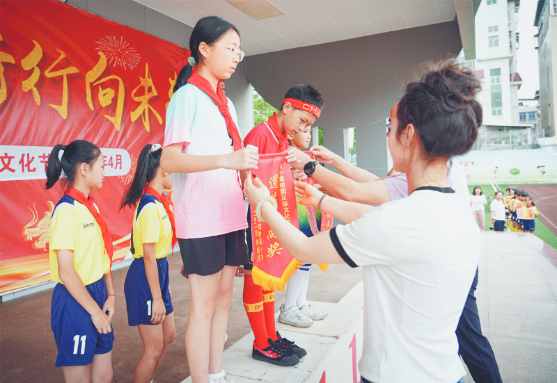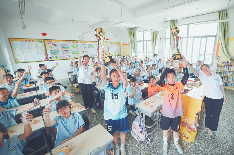 精准的传球,精妙的过人,精确的射门。赛场上的小运动员们激情挥洒汗水,为了班级荣誉而拼搏。场上精彩不断,场下师生们的欢呼声此起彼伏。在常规时间内,两队以2:2的比分战平。点球大战中,六年级2班战胜了六年级4班,最终夺得了六年级冠军。本届足球文化节在师生们的欢呼中胜利闭幕。