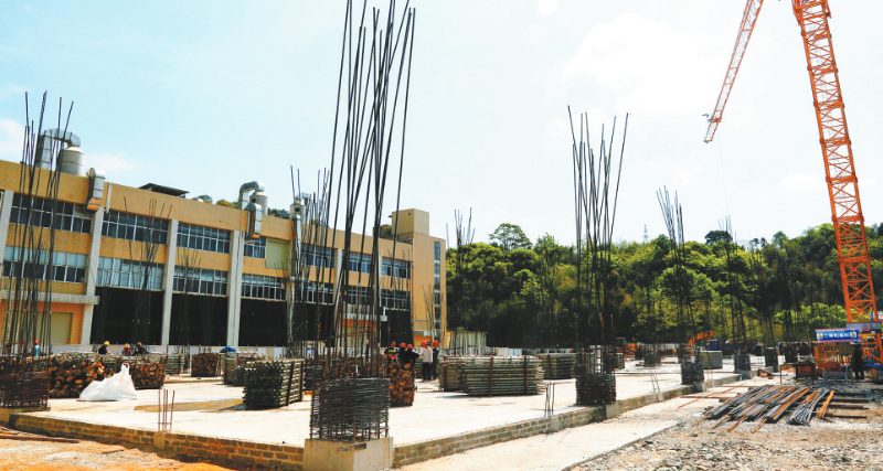 本报讯(通讯员 温连光 林志珊 文/图)近日,笔者在位于新罗区江山镇巨富食品智能化生产线建设项目现场看到,工人们在进行主体工程建设,二层钢管架、钢筋制作、安装在有序施工中。