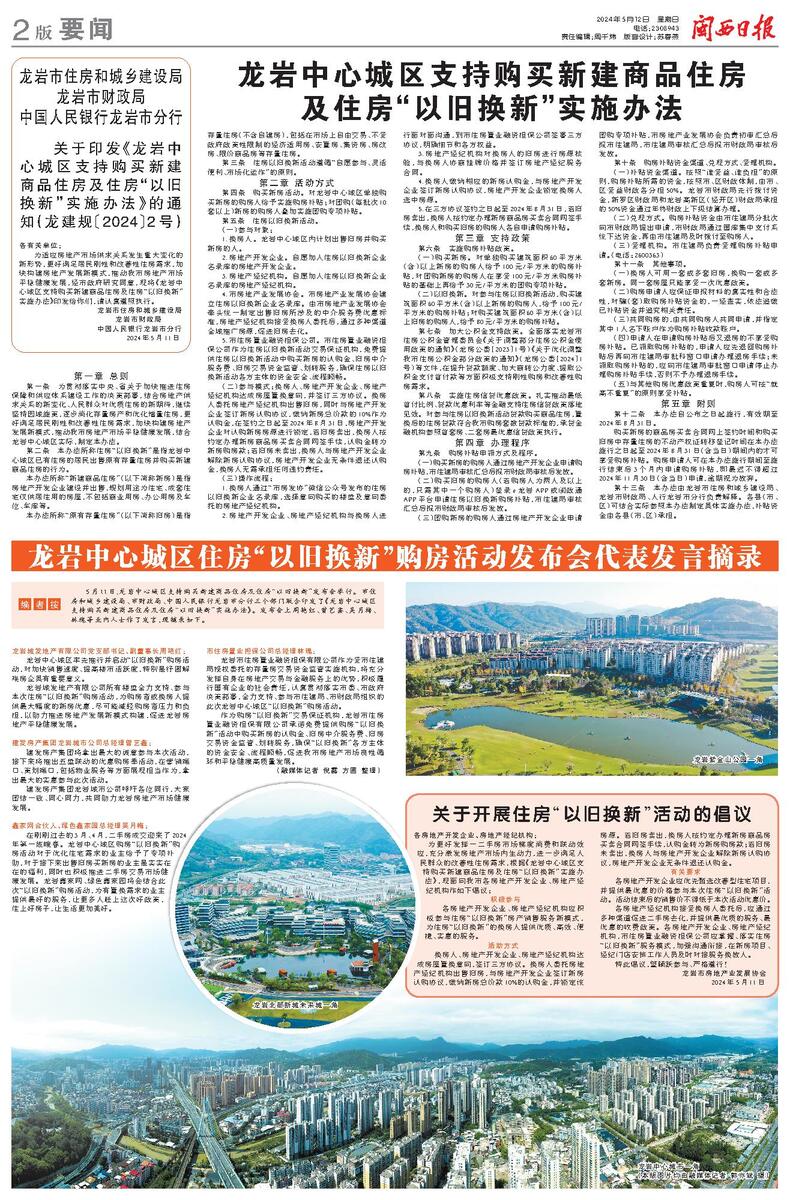 龙岩中心城区支持购买新建商品住房及住房“以旧换新”实施办法