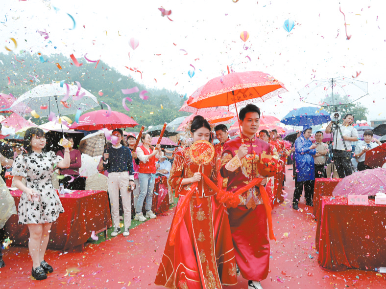 5月20日,一场简约而又甜蜜的集体婚礼在风景秀美的海峡两岸农业融合发展(瑞都)示范基地举行,漳平市20对新人共赴一场中式婚礼,许下执手白头的诺言。通讯员 陈灵丽 曾佳强 陈治鑫 摄