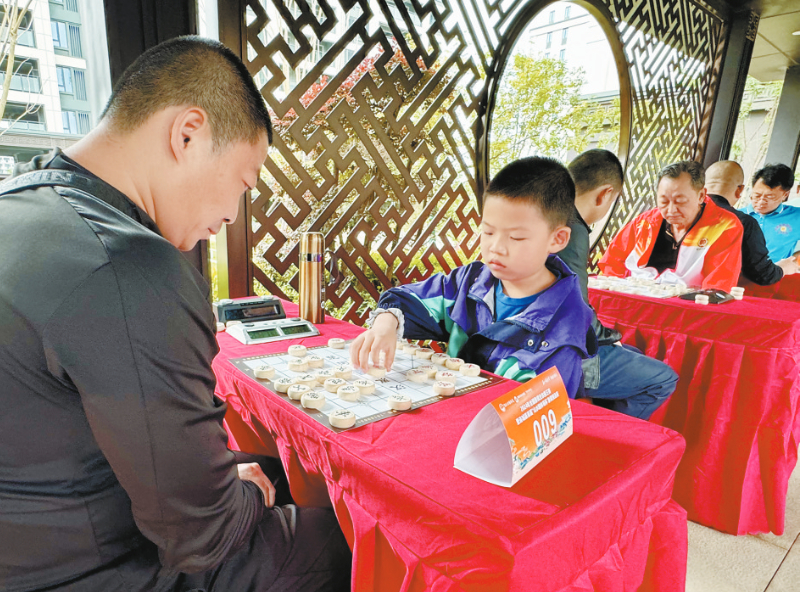 楚河汉界上厮杀的老少棋手
