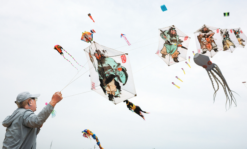 6月2日,参赛选手在比赛现场放飞风筝。当日,山东省首届风筝公开赛在山东省枣庄市台儿庄区开赛,共有21支代表队100余人参赛。 新华社发 孙中喆 摄