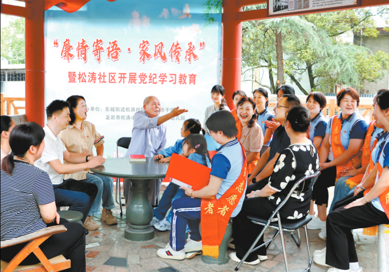 近日,新罗区东城街道松涛社区携手共建单位市干休所、松涛小学、龙岩市实验幼儿园在市干休所开展党纪学习教育暨“廉情寄语·家风传承”活动。通过红色故事宣讲、廉洁文化诗朗诵、听老红军讲党史等丰富多样的形式,教育引导党员不断增强政治定力、纪律定力、道德定力、抵腐定力,始终做到忠诚干净担当。融媒体记者 郭亦斌 通讯员 陈萍 摄