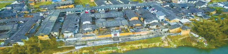 抬头放眼眺望,近处是临岸的一座座粉墙黛瓦的厝宅,形象鲜明,很是壮观;远处为一色青翠的群山,境界恬静,显得安然。人类建造的宅厝与自然天成的山峦,在蓝天下融为一体,相得益彰;人类建造的雅致与大自然的神秀,充满诗情画意,韵味十足,构成一幅令人陶醉的“山乡水墨画”,真乃“有逢即画原非笔,所见皆诗本不言”。