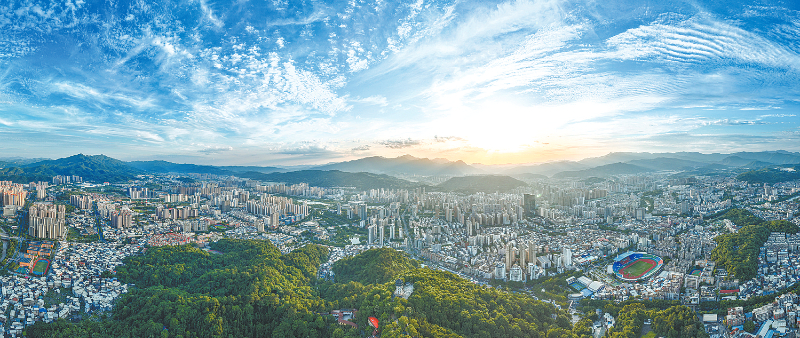 我市入选首批深化气候适应型城市。图为龙岩中心城市航拍。融媒体记者 章宸睿 摄