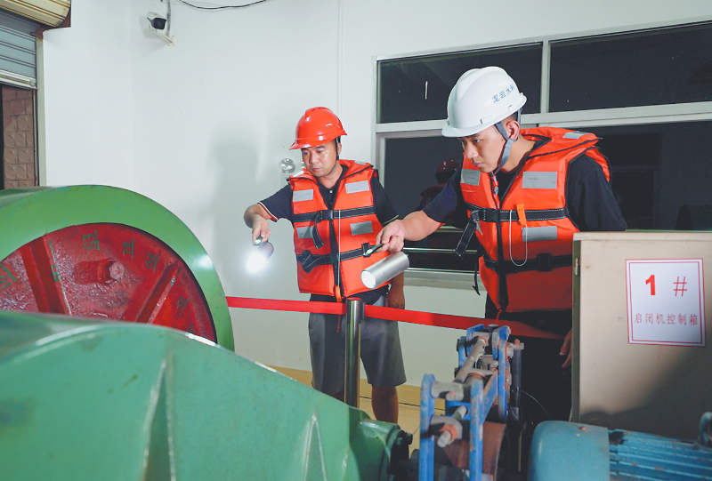 16日,我市普降大雨到暴雨,局部大暴雨。为切实做好防汛工作,龙岩市水库管理中心组织专业技术人员对黄岗水库、何家陂水库工程重要部位、闸门启闭设备、备用电源、水雨情监测设施及通信设施进行深入排查。据悉,黄岗水库于16日21时30分开始泄洪,何家陂水库于16日16时开始泄洪。图为技术人员正在检查黄岗水库闸门启闭设备。融媒体记者 章宸睿 通讯员 罗永彬 摄