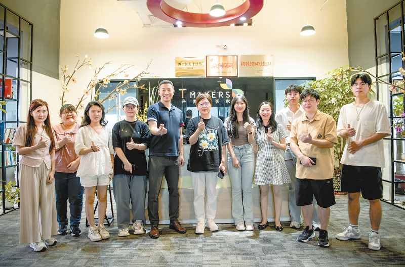 厦门“台青创客家”负责人虞慧芳(中)和她的部分团队成员合影(6月14日摄)。厦门“台青创客家(T-makers)”是由在祖国大陆成功创业的台湾企业家、海峡两岸文创及科创产业精英、投资家创立的,专注为海峡两岸青年提供创新创业的服务平台。自2016年8月创立以来,“台青创客家”累计共吸引170多家企业进驻,其中存续的台湾青年创业企业98家,为100多家台青企业申请启动资金补贴、办公租金补贴、居住房间租赁等总金额超千万元;同时还在工商注册、财税服务等方面为创业青年和入驻企业提供便利和优惠。新华社记者 魏培全 摄