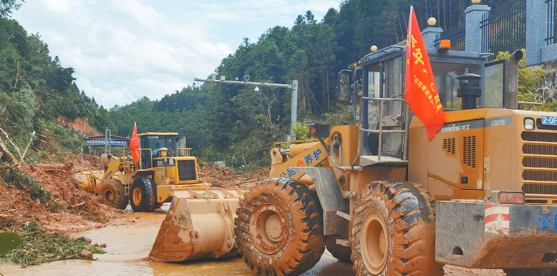 “6.16”特大暴雨后,武平公路中心立即启动应急预案,组织抢险突击队迅速奔赴一线开展道路抢通。6月21日下午13时下坝至中赤全线抢通,22日18时Y125线美溪村道路还剩约600米未抢通。 通讯员 谢瑜斐 刘燕 摄