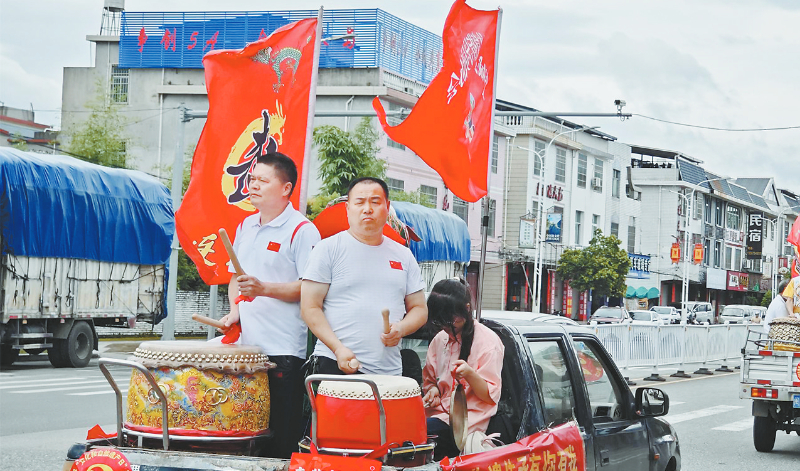 连城拳传承人敲锣打鼓踩街宣传连城拳