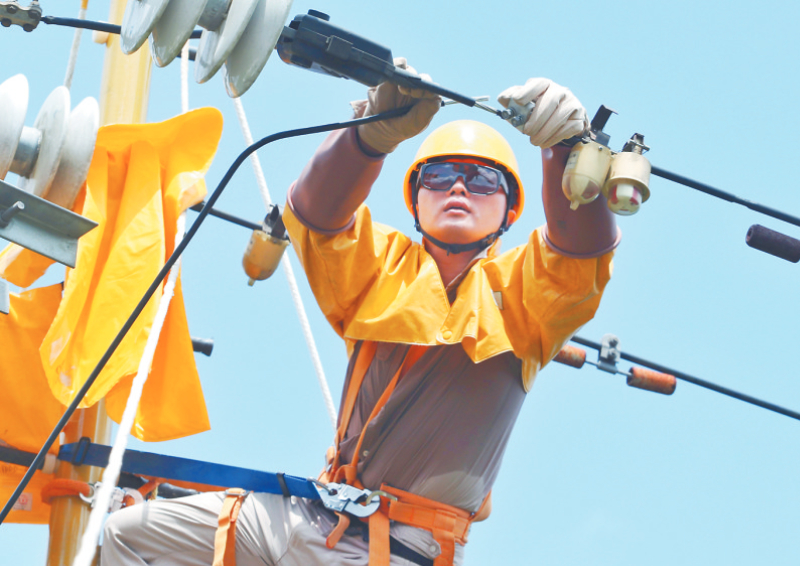 近日,随着夏季用电高峰的到来,为了不让沿线用户面临断电的困境,在田间、山坡、草丛等带电作业车无法进入的地带,永定区供电公司人员使用绝缘“蜈蚣梯”带电作业,有效应对地形复杂、道路交通不便等困难,满足开展不停电作业的需求。 通讯员 熊川 摄