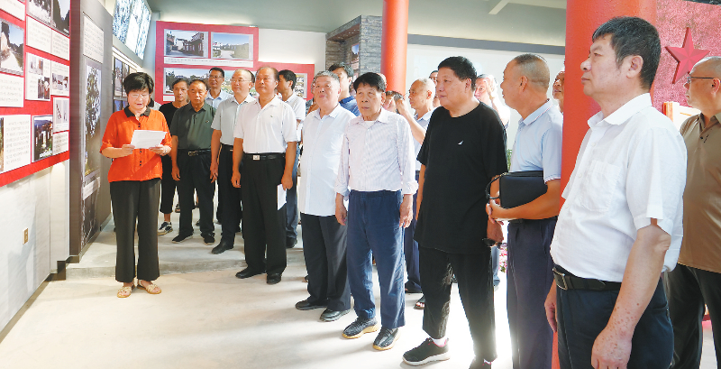 7月30日,长汀县原闽粤赣边在汀老同志联谊会组织开展“追忆边纵历史 赓续红色血脉”主题党日活动,纪念闽粤赣边纵队独立第七团成立75周年,深刻缅怀“独立第七团”的丰功伟绩。图为老同志在瞻仰中国人民解放军闽粤赣边纵队独立七团历史陈列馆。通讯员 陈炳林 吕少宏 摄