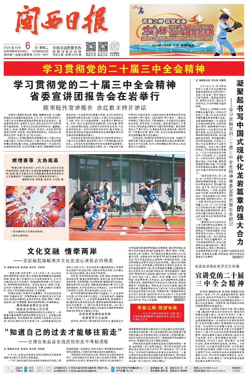 “青春之棒·筑梦未来”,8月4日至11日,2024年东森杯海峡两岸(连城)青少年棒球邀请赛暨第五届海峡两岸(连城)青少年棒球文化节在连城县举办,文化节以棒球运动为交流媒介,搭建海峡两岸青少年交流交往、相知相亲的桥梁纽带。来自台湾台中、桃园、花莲、台东的4支棒球队,与来自连城、平潭、闽清的4支棒球队,将在7天时间里比拼球技、交流感情。