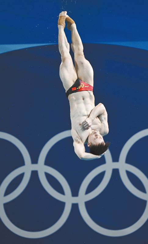 8月8日,中国选手谢思埸在比赛中。当日,在巴黎奥运会跳水项目男子3米板决赛中,中国选手谢思埸获得金牌,另一名中国选手王宗源获得银牌。 新华社记者 王鹏 摄