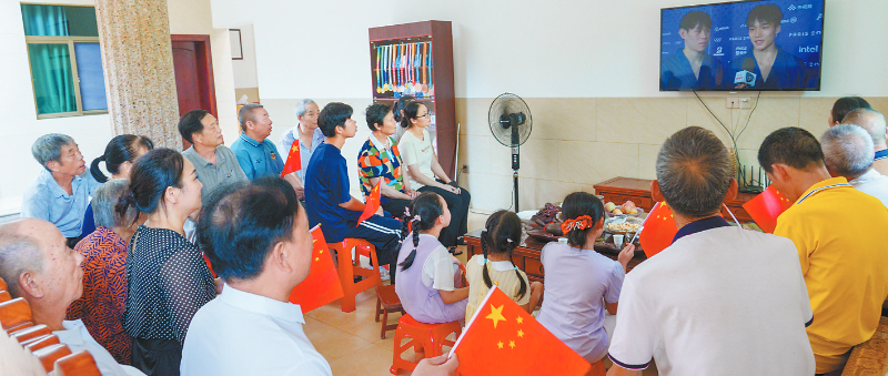 十一日下午,项启彰亲人在连城老家观看其比赛的录播。融媒体记者 郭亦斌 通讯员 江云华 摄