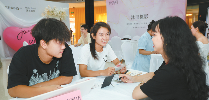 图为8月11日,市民在婚礼一站式展区咨询相关服务。融媒体记者 谢泽铧 摄