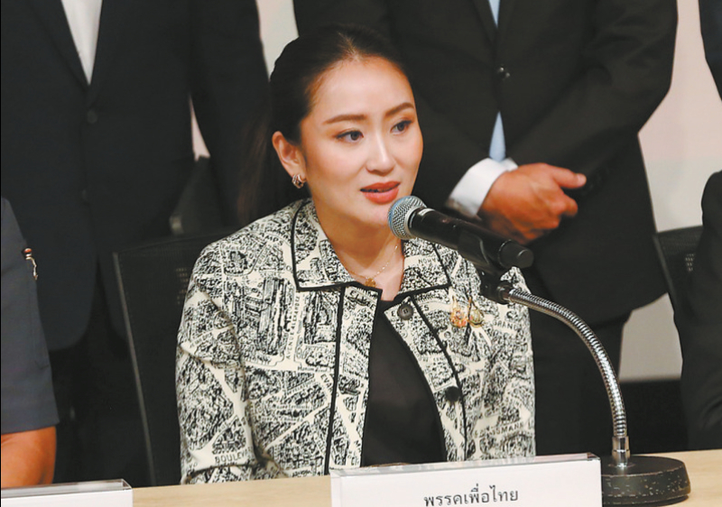 8月15日,在泰国曼谷,佩通坦·钦那瓦出席新闻发布会。泰国执政联盟15日举行新闻发布会,一致宣布提名佩通坦·钦那瓦为新一任泰国总理候选人。 新华社发