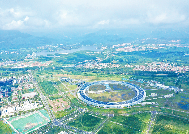 鸟瞰高能同步辐射光源(无人机照片,8月18日摄)。记者8月19日从中国科学院高能物理研究所获悉,国家重大科技基础设施——高能同步辐射光源(HEPS)储存环日前成功实现束流存储,束流流强超过10毫安。储存环是HEPS的核心组成部分,用于储存高能高品质电子束,并产生同步辐射光。HEPS储存环束流轨道周长约1360.4米,圈内面积超过20个足球场,于今年7月1日完成全部设备研制和安装。作为北京怀柔科学城重大科技基础设施集群的核心设施,HEPS由国家发展改革委批复立项,中国科学院高能物理研究所承担建设,建成后将是世界上亮度最高的第四代同步辐射光源之一。 新华社发 袁广 摄