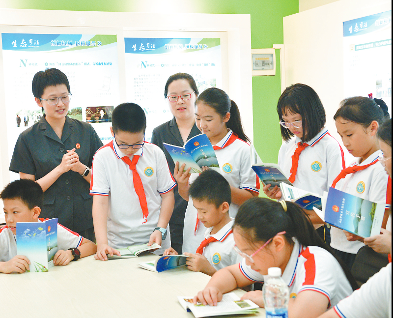 “同学们知道哪些行为会破坏生态环境吗?”在生态司法展厅内,法院干警向同学们讲解介绍长汀水土流失治理的历程、司法审判是如何服务生态保护的、若破坏生态环境可能要承担的法律后果,引导同学们用实际行动保护地球家园。