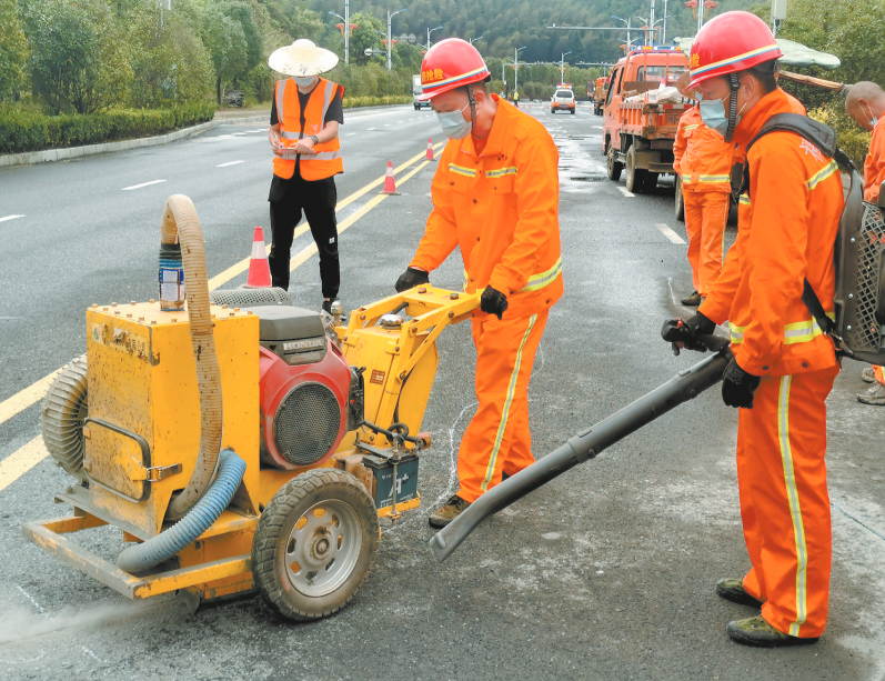 近日,龙岩市公路系统2024年沥青路面坑槽及裂缝修补技能竞赛在国道G358上杭古田路段举办,来自各县(市、区)公路中心的14支参赛队伍28名选手同台竞技,竞赛内容分为理论知识考核和技能实操考核。融媒体记者 罗玉文 通讯员 章蕊 苏琼花 摄