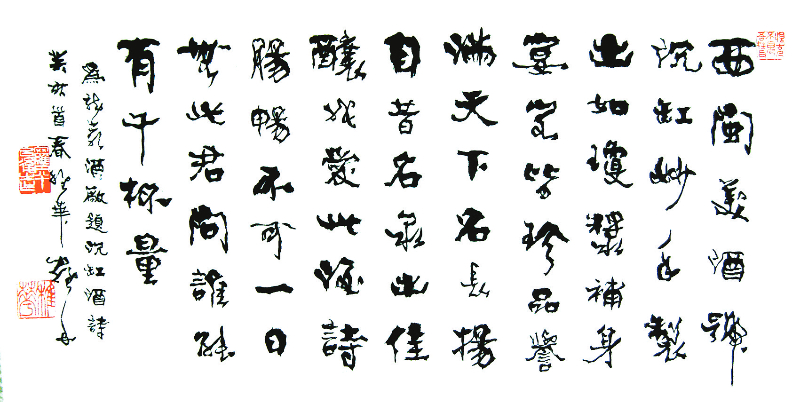 罗丹听了项南的一番话和厂长的介绍,品尝了一杯琥珀光泽、酒味芳香的沉缸酒后,脸上激动得渐红起来。他健步来到厂部办公室,摊开随身带来的笔墨和宣纸,即兴吟咏,朗声赞道:“西闽美酒号沉缸,妙手制出如琼浆。补身宴客皆珍品,誉满天下名长扬。自昔名泉出佳酿,我爱此酒诗肠畅。不可一日无此君,问谁能有干杯量?”