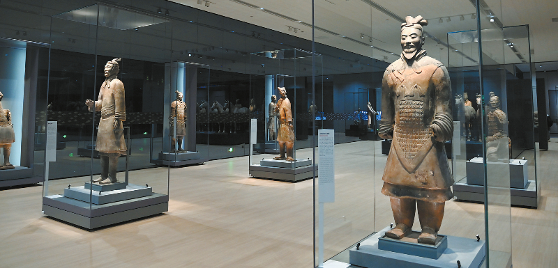 这是在秦始皇帝陵博物院展出的兵马俑(9 月 8 日摄)。2024年是秦始皇兵马俑考古发掘50周年。9月8日,“千古一帝的地下王国——秦始皇陵考古发现展”在秦始皇帝陵博物院开幕,通过230件(组)文物精品,带领观众走进盛世强秦的历史画卷。新华社记者 李一博 摄