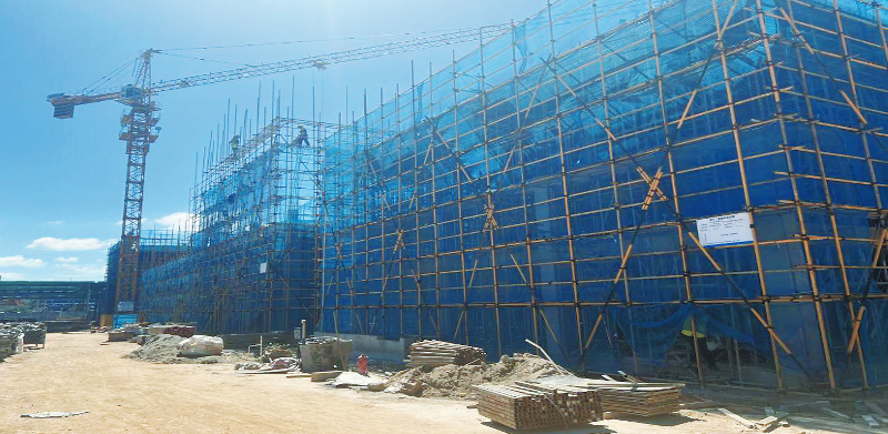 已完成承台基础施工、1#原料库模板安装、2#原料库钢构安装和破碎车间钢梁吊装。