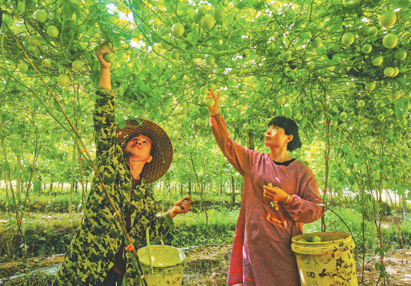 昨日,在永定区抚市镇中湖村致富家庭农场,一颗颗饱满圆润的百香果垂挂枝头,散发出浓郁的果香,丰收在望。据悉,今年永定全区共发展百香果种植面积3900亩,覆盖24个乡镇,预计全年产量3600吨。 通讯员 熊川 摄