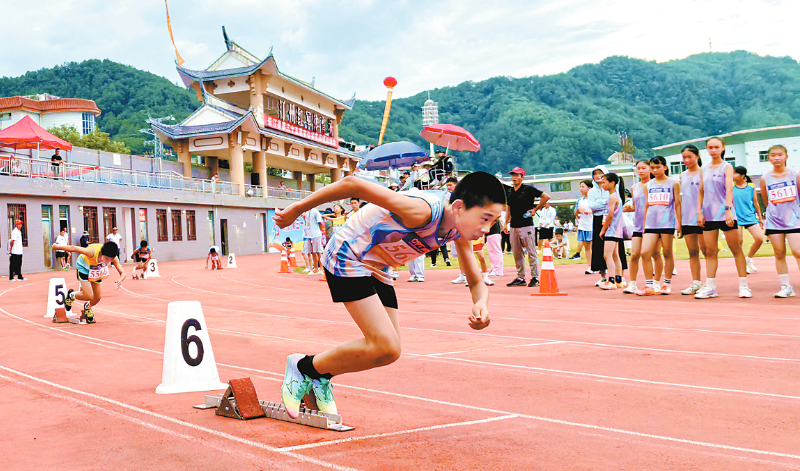 9月20日,长汀县第三十五届中小学生田径运动会在长汀红军体育场开幕,共有全县中小学校45支代表队 573 名运动员参赛。图为运动员400米比赛起跑瞬间。通讯员 黎寿钦 沈春桃 摄