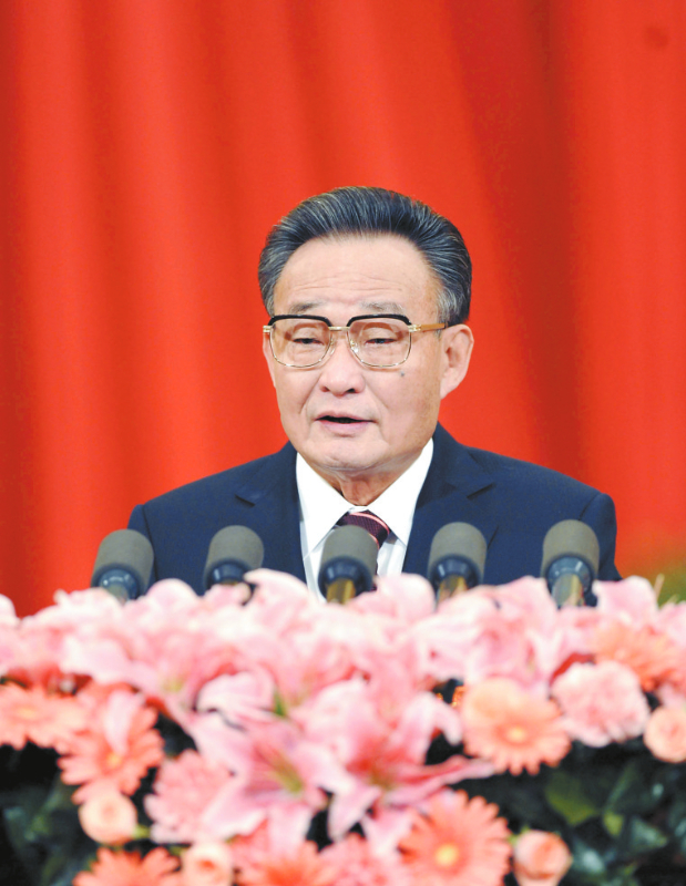 2011年3月10日,十一届全国人大四次会议在北京人民大会堂举行第二次全体会议。吴邦国同志作全国人民代表大会常务委员会工作报告。新华社记者 谢环驰 摄