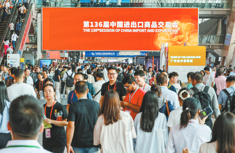10月15日,中外客商行走在第136届广交会场馆内。当日,以“服务高质量发展,推进高水平开放”为主题的第136届广交会拉开帷幕。本届广交会线下参展企业超3万家、展出新品115万件,新企业、新产品、新技术、新业态大量涌现,吸引14.7万名境外采购商预注册。本届广交会共分三期举行,分别聚焦“先进制造”“品质家居”“美好生活”题材。 新华社记者 刘大伟 摄
