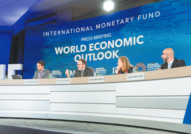 10月22日,国际货币基金组织(IMF)在美国华盛顿举行《世界经济展望报告》媒体发布会。国际货币基金组织(IMF)22日发布最新一期《世界经济展望报告》,将2024年全球经济增长预期维持在3.2%,与7月预测值持平。IMF警告,地缘政治裂痕加剧可能影响全球经济长期增长前景。 新华社记者 胡友松 摄