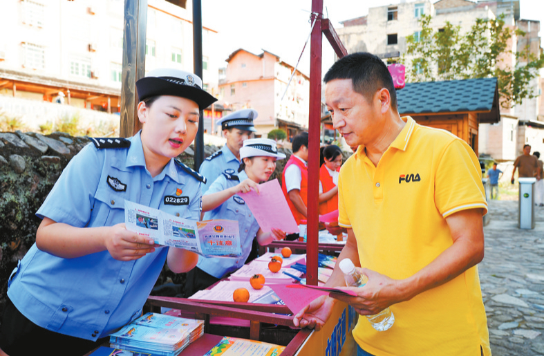 10月23日,龙岩市公安局永定分局交通警察大队联合龙岩市高速交警四大队在福建土楼永定景区开展文明出行、文明旅游的宣传活动。活动中,民警向游客和当地群众面对面讲解文明出行的交通安全知识,引导游客文明旅游。通讯员 熊川 黄秋萍 摄