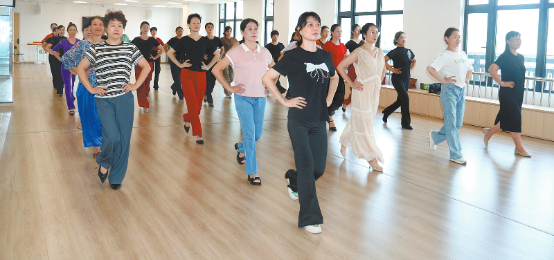 近日,在市老年大学莲东校区舞蹈教室,47名学员正在教师黄津津的带领下练习爵士舞基本功组合,大家为进入爵士舞表演班面试环节铆足力气。