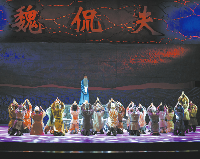 这是11月6日晚,演职人员在表演闽西汉剧《魏侃夫》的场景。当日,由武平县汉剧艺术传承保护中心重点创作的大型闽西汉剧《魏侃夫》在福州大戏院精彩上演,亮相第九届福建艺术节暨第二十九届全省戏剧会演,为观众呈上了一道饱含地方特色与深厚文化底蕴的艺术大餐。通讯员 王展雄 摄