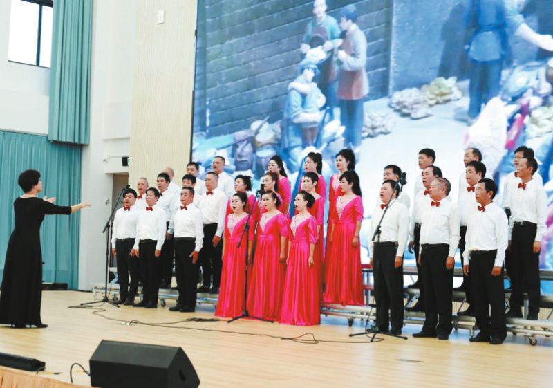 为纪念中央主力红军长征出发90周年,弘扬伟大长征精神,走好新时代长征路,近日,市老年大学与市关工委、文旅汇金发展集团联合开展“追寻红军足迹 赓续长征精神 凝聚奋进力量 推动创新发展”联欢活动。整场演出主题鲜明、扣人心弦,他们以激昂之声追寻红军的足迹,用动人的舞蹈再现长征路上红军敢为人之先的初心使命,赢得了现场阵阵掌声。图为市老年大学学员演唱《七律长征》。(通讯员 黄旭 崔爱学 摄)