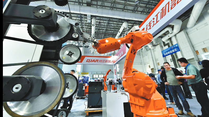 图为企业在展会上展示的机器人生产设备。中新社记者 张斌 摄
