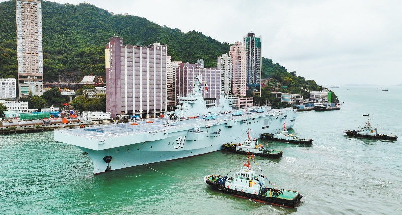 11月21日,海军海南舰在香港招商局码头顺利靠泊。新华社发 刘基 摄