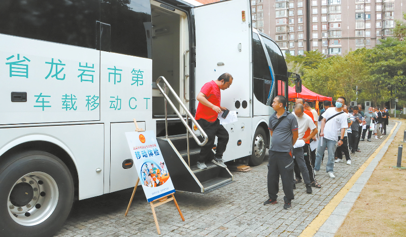 王英奎是龙岩城区一位网约车司机,11月17日早上,他不紧不慢出了家门,散步来到家附近的另一个“家”——龙岩市工人文化宫工会驿站,此时不到8点,一辆移动体检车已经静静地停在那里。