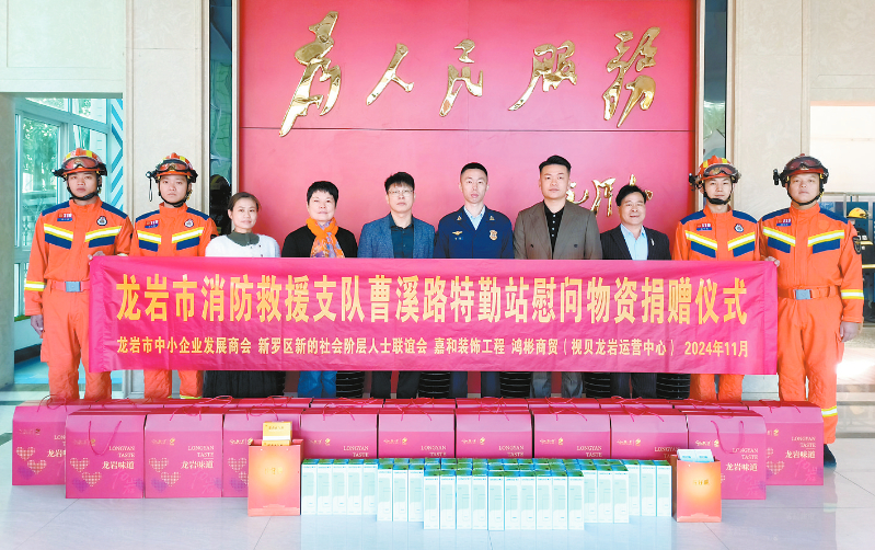 11月27日上午,龙岩市中小企业发展商会、新罗区新阶联、嘉和装饰工程、视贝龙岩运营中心等单位代表前往龙岩市消防救援支队曹溪路特勤站,捐赠了藿香正气水等爱心物资,感谢他们在消防救援一线的辛勤工作。融媒体记者 赖珊盛 摄