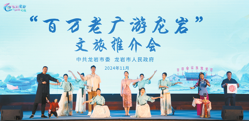 11月15日,由福建省文化和旅游厅指导,龙岩市文化和旅游局主办的“清新福建·五彩龙岩”——“百校万人·花young游八闽”巡回文旅推介活动(广州站)在广州大学举办,活动期间,共计超过200家媒体集中发布活动盛况,充分发挥“文旅+名校”的协同效应,有效拓宽龙岩在珠三角地区的客源市场。同日,“百万老广游龙岩”文旅推介会在广州举行,会上,还以情景演绎的形式举行了龙岩文旅推介秀,沉浸式体验“古田红色游”“永定土楼游”“长汀古城游”“丹霞温泉游”“休闲生态游”等龙岩五大文旅品牌。1-11月,全市预计接待广东游客410万人次、同比增长7%;预计接待广州游客100万人次、同比增长24%。