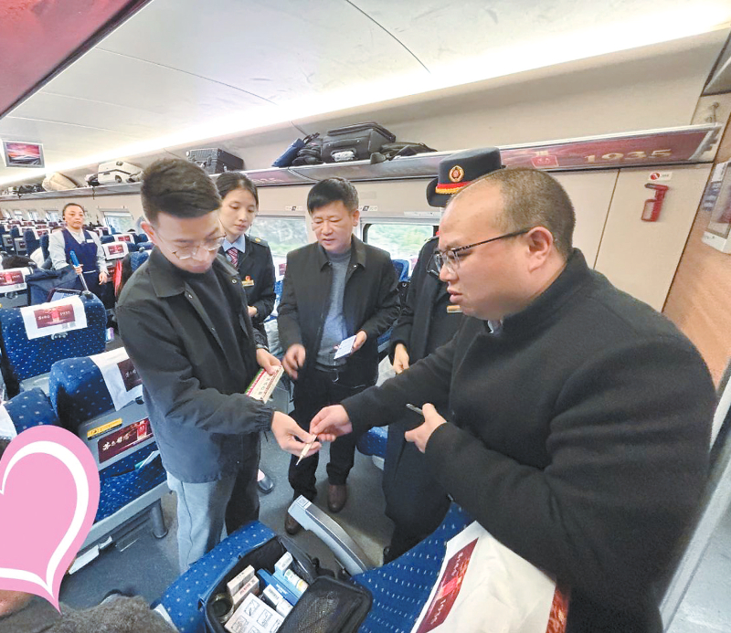 当时,列车广播响起,称13号车厢一名旅客身体不适,急寻医务人员协助。龙岩市第一医院胃肠肛门外科副主任医师林双明、上杭县医院ICU副主任医师何化庆以及药剂科主管药师林荣启三名医生听到广播后,不约而同地奔赴了同一个方向。他们分工协作,迅速为旅客检查身体并询问病情,发现旅客疑似因扁桃体感染引起发热寒颤。于是,他们仔细查看了列车急救箱里的药品,并让旅客服下了退烧药。待旅客身体好转后,三名医生不忘叮嘱其下车后及时去医院做进一步检查。