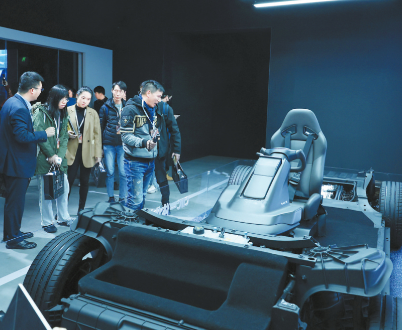 12月24日,嘉宾在发布会现场交流讨论。当日,宁德时代在上海举行“宁德时代磐石底盘”发布会。宁德时代磐石底盘以电池为中心展开设计,将电芯直接集成到底盘中,实现和底盘的结构共用。 新华社记者 方喆 摄