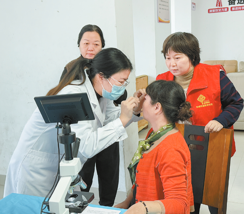 日前,龙岩市新罗区归国华侨联合会、南城街道新岩社区在东岳花园活动室开展“大爱龙岩 明亮视界”眼部健康义诊公益活动,让居民对眼部健康有更全面的了解。 通讯员 饶思洁 邱臻清 摄