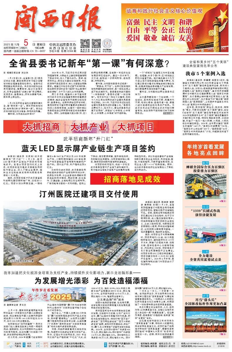 2025年,是“十四五”规划的收官之年。永定区将坚持以习近平新时代中国特色社会主义思想为指导,全面贯彻落实党的二十大和二十届二中、三中全会以及习近平总书记在福建考察时的重要讲话精神,启动实施“3511”高质量发展工程,坚持稳中求进、以进促稳,守正创新、先立后破,系统集成、协调配合,高质量完成“十四五”规划目标任务,科学谋划“十五五”各项工作,全力打好永定革命老区高质量发展建设战役。
